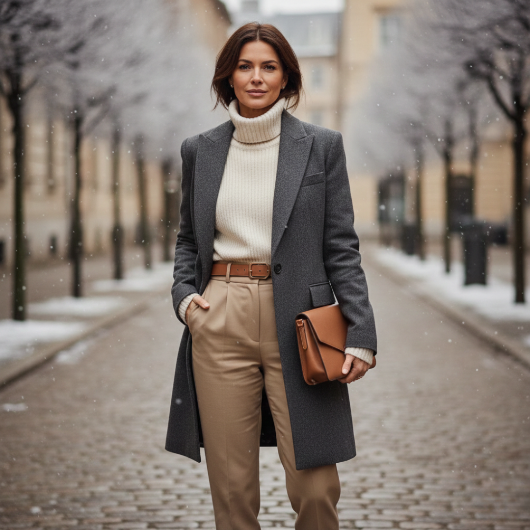 Langer, taillierter Frauenmantel – einreihiger Wintermantel mit Reverskragen
